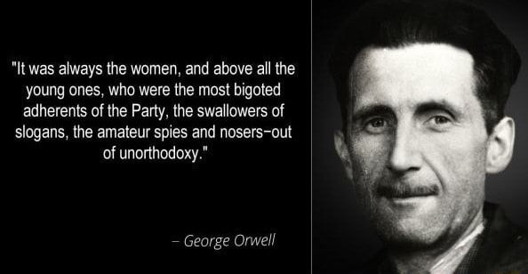 Notice how the conference panel is all women wearing masks? Orwell called it.