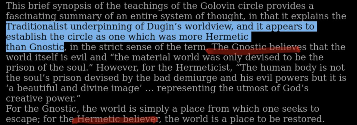 For example: Putin’s “spiritual advisor” Alexsandr Dugin blames the “fall of the West” on Gnostic infiltration… This is the “inner”-thinking of Moscow’s thought-leadership. In fact, one of them wrote a book explaining that the U.S. needs to be destroyed for allowing evil & dark forces to infiltrate it and corrupt it.
