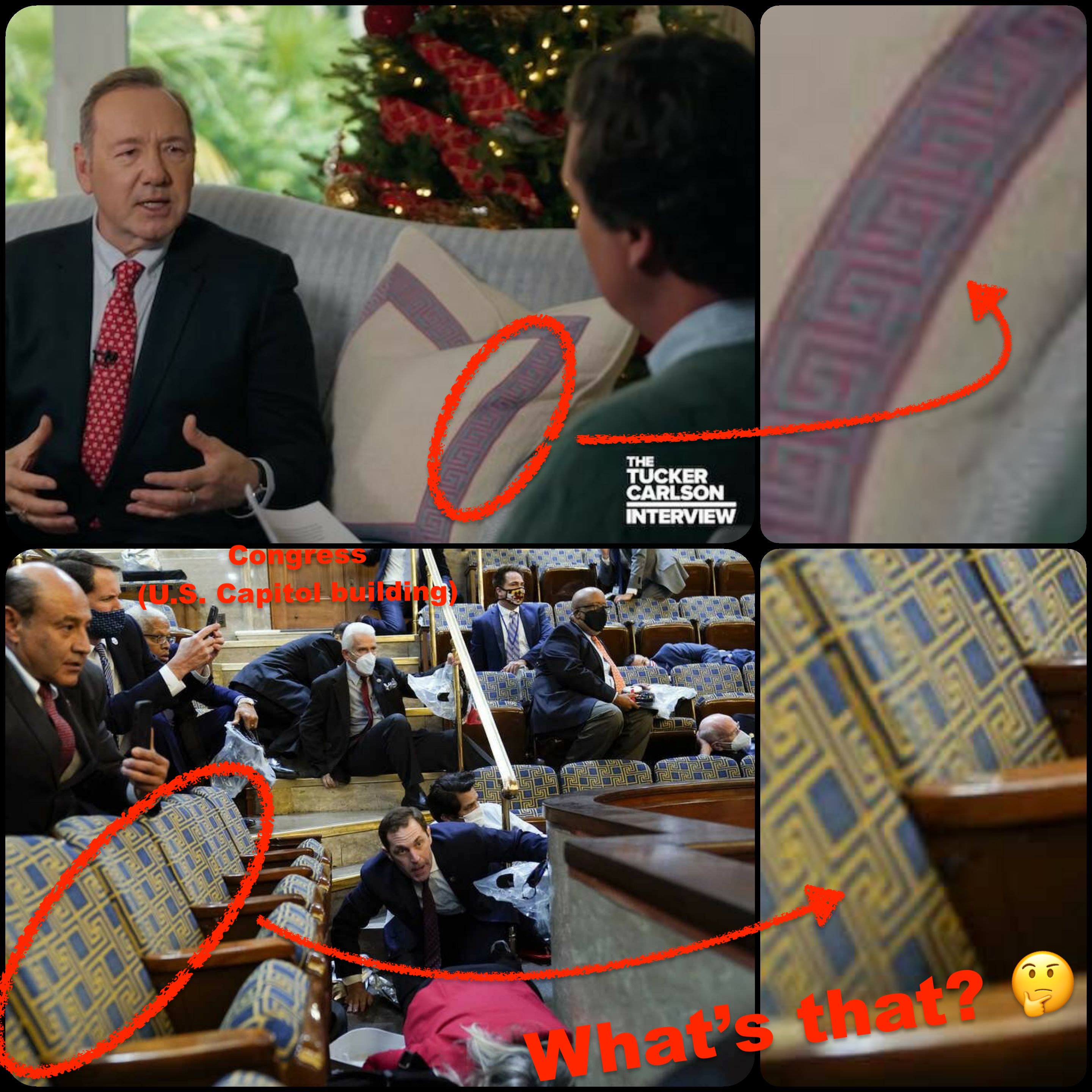 The top pattern is referred to as “Greek Key” or “Meander”. It is found in lots of Greek and Roman architecture, on flagons of wine, amphoras, and Greek pottery. As we, know the Greeks/Romans were deeply steeped in occult practices. The symbolism of “Greek Key” seems to also be steeped in occult beliefs. The bottom pattern is found on seats in the U.S. Capitol, and is a variation on Greek Key called “Enigma”. It looks curiously like this other ancient symbol. Some have said they are derived from the very occult (and mathematical) symbol called the “Tesseract”, which is an “unfolded hypercube”. (more info below the collage).