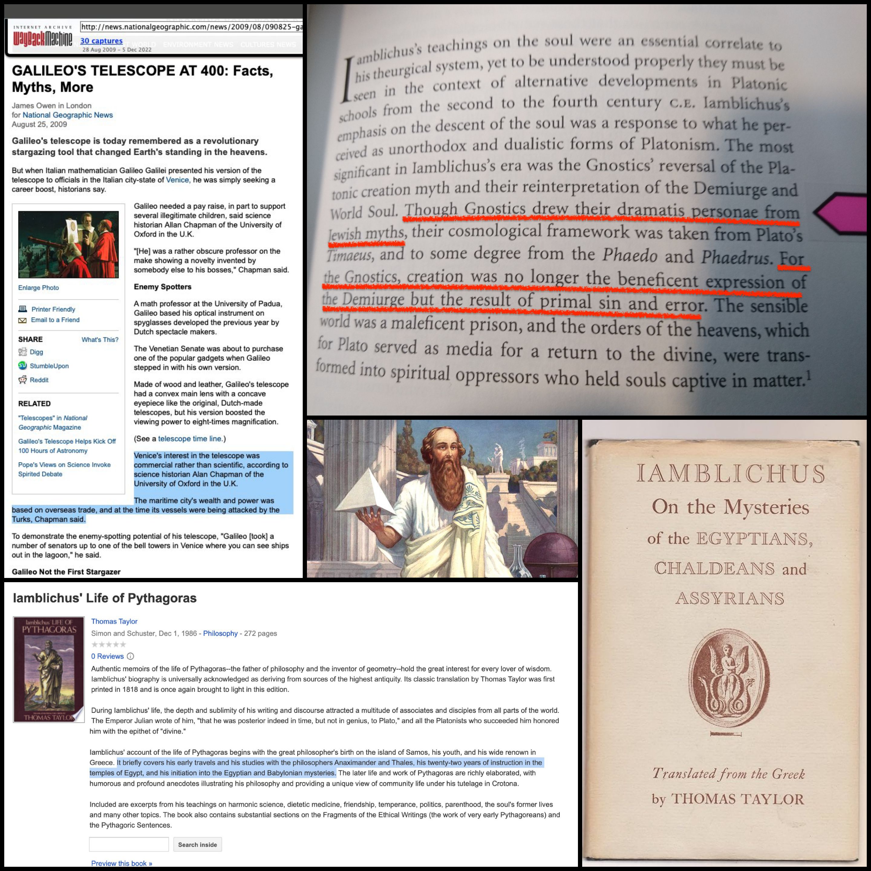 Iamblichus is the ancient writer of the “official” story of Pythagoras. Due to Pythagoras and Plato influence in the early “mystery religions” many think Pythagoras may not even have existed and that he was an apocryphal character invented to “publicly declassify” secret knowledge. Iamblichus would also write about these “Mystery Schools” also, furthering the suspicion about Pythagoras.