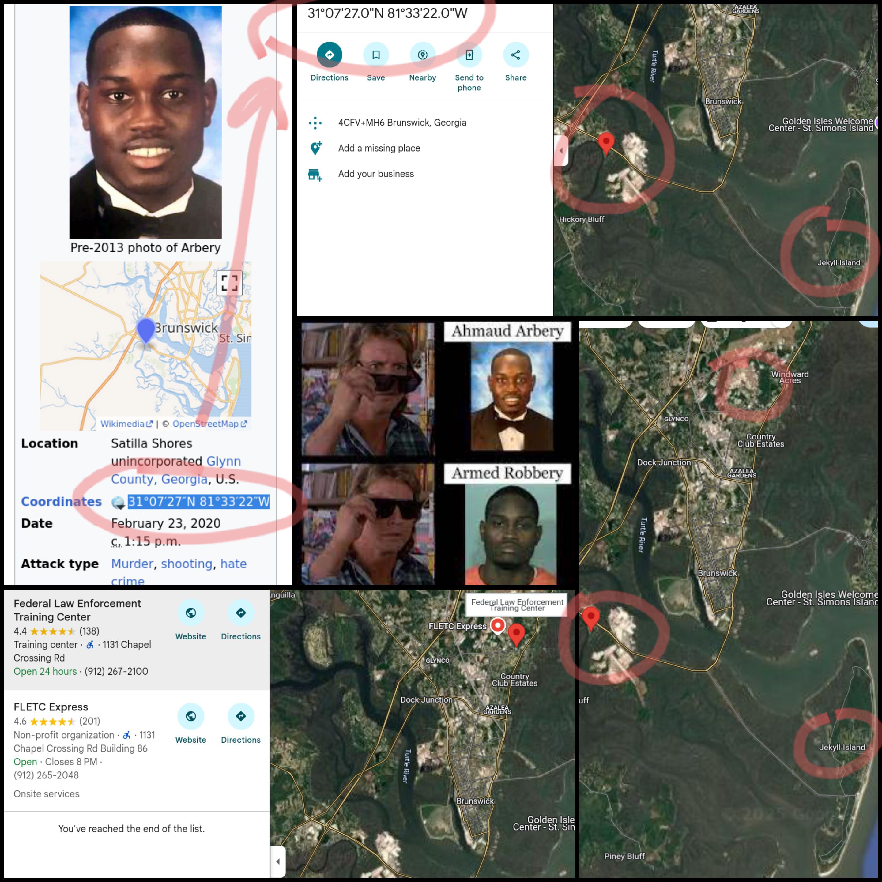 - Also, the Ahmad Arbury incident took place directly next to Jekyll Island (where Oligarchs planned the “Federal Reserve” psyop using fake names).
